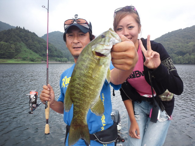 今日は朝から西風が吹き雲も多く涼しい過ごしやすい一日でした。しかしちょっと冷えるとすぐターンの影響がでる夏の終わりの檜原湖は、曇ったから釣れるというほど甘くはありません。甘くはないですが昨日までほど釣り人もたくさんいませんので、しっかり釣り込めばいい魚がでてきます。勘のいい方ならすぐアジャストでき連チャンモードに入れます。今の桧原湖には稀に50を超えるビッグバスを狙うバクチパターンと、35〜38センチ前後のバスでトーナメント的なハイウエイトを狙うアベレージパターンとサイズの落ちる25〜32センチ数釣りパターンがあります。さらに数釣りだけの超ミニミニバスパターンというのもありますがそれは無視していいでしょう。