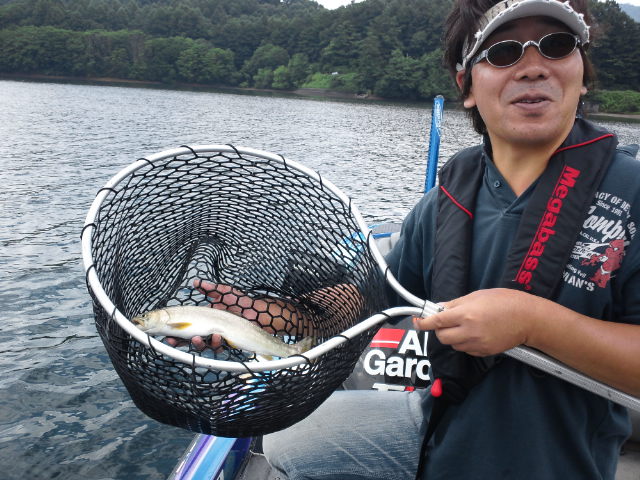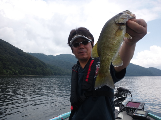 雷を伴って短時間に激しく降る雨をは最近ではゲリラ豪雨という少し意味不明な呼び名がついていますが、天気予報ではにわか雨と呼んでいます。このギャップに少し疑問。そんなことはいいどうでもいいですが、今日は大気の状態が不安定で桧原湖の周囲ではたくさんの積乱雲が発生していました。雷もなっていましたが、南北に長い桧原湖は雨を避けることも可能な時があり、今日も濡れずに助かりました。雨の影響で午前中はピーカンべた凪の時間があり釣り方を変えて攻めましたが、午後はローライトと風が見方になり、昨日までの釣り方で釣れました。湖を広く回りましたが釣れないエリアはほとんどありません。ひじょうに楽しめる今の桧原湖です。