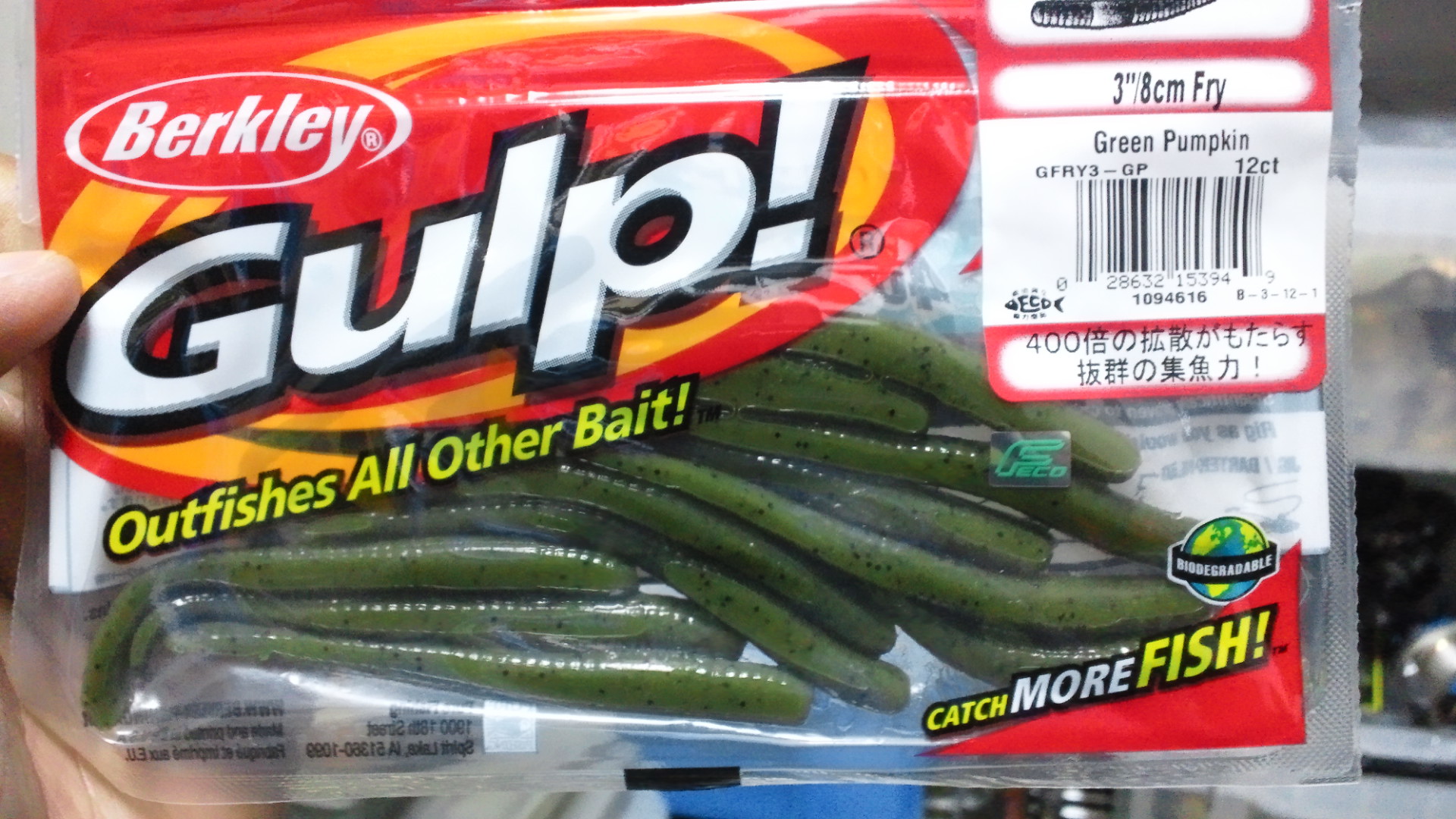 今日届きました。3月の北山湖で活躍したガルプのフライです。最近のワームにはあまりない張りのあるガルプのマテリアル、言わずともしれた集魚効果の高いガルプ臭、味。そしてエコトーナメントで詳細できるF認定。大量ストックがあったりショップを探して回った方も多いのではないでしょうか? 私は釣りビジョンで紹介した、重めのネコリグをジグヘッド風に使うのが気に入っています。