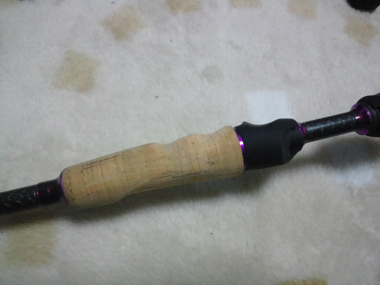 プロトの巻物ロッドのグリップを削ってみました。私は右手投げですが、グリップエンドに左手を添えるいわゆるダブルハンドではなく、片手のみで卓球のラケットを振るように投げるシングルハンドキャストが多いです。ピストルハンドルのときに染み付いたキャストの癖です。もちろん遠投したいときは自然にダブルになっていますが、ショートキャストではもろにでてしまいます。シングルハンドで投げると手首が回りやすく、自然に手のひらにグリップが強く当たってしまい違和感を感じていました。左手を添えるだけでイイのですがなかなかついた癖は治りません。右手でキャスト中、左手は違うことを考えているのですから。で、少し大胆に削ってみました。コルクグリップはこれが出来るからいいですね。もちろんこの形は私の手に合わせたので製品版には反映されることはないですが、ショートキャストがかなり楽になりそうです。