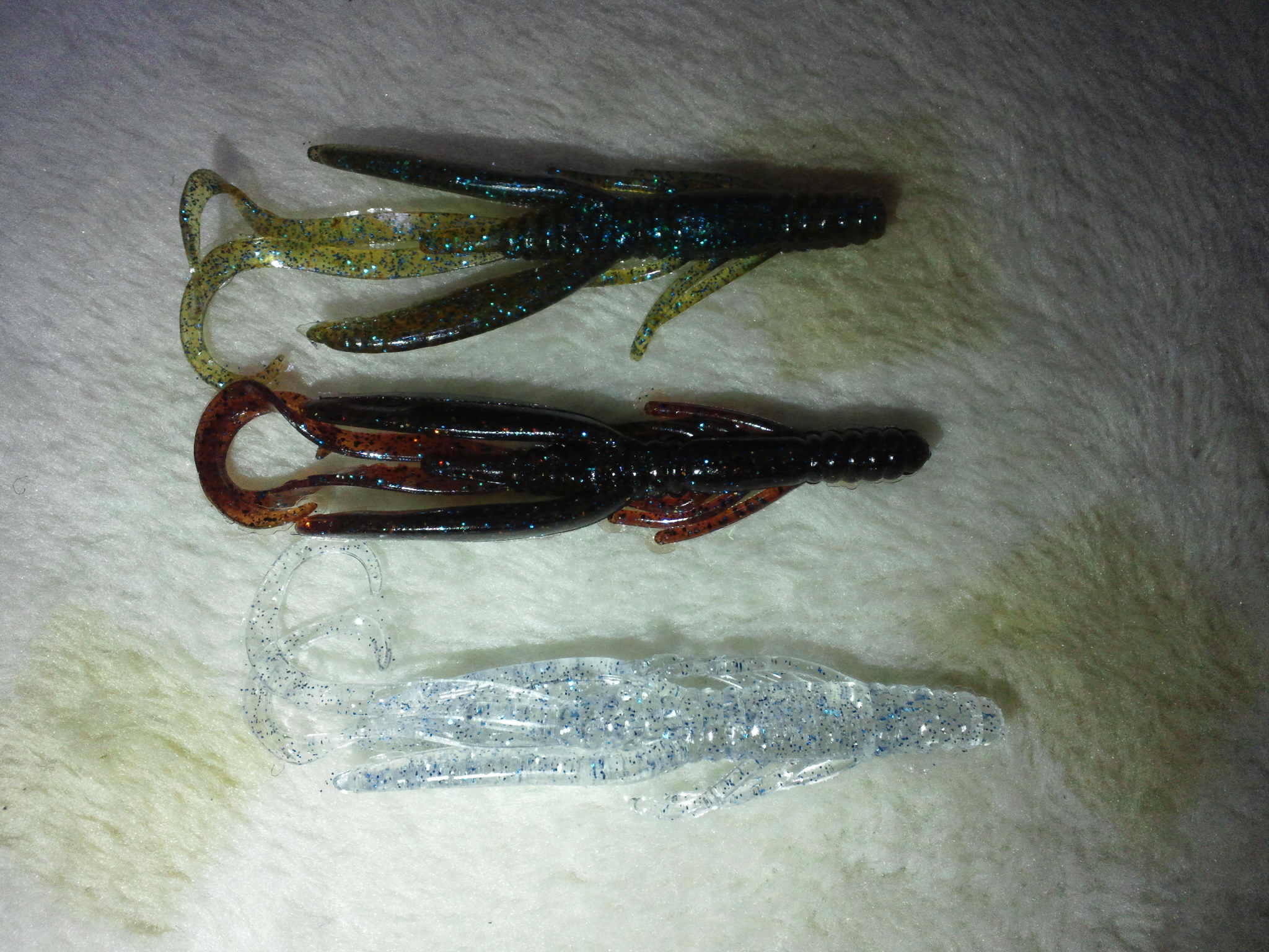、完全にクリアーにシルバーとブルーラメのソーダシュリンプが加わります。マッディテナガは2009のバサーオールスタークラッシックで同系色のレッグワームが活躍しまたした。水が悪いときやローライトではコレでしょう。ソーダは逆です。クリアウォーターやマッディでもよりフィネスなカラーアプローチが可能になります。このカラーも私のシークレットカラーです。この三色、正直発売しないでほしいと思うくらい今までシークレットにしてきたものです。