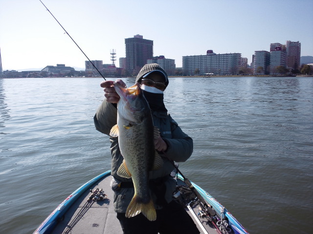 朝はピーカンべた凪だったので、少し巻物をやってからすぐライトリグにスイッチ。午前中はポロポロと数もでました。最大は55。ルアーはバークレーのフライというストレートワームのダウンショットとゲーリー6インチワームのネコリグです。なんか春というよりは冬よりの魚が多そうなのでダウンショットをチョイスしましたが、これがよかったみたいです。