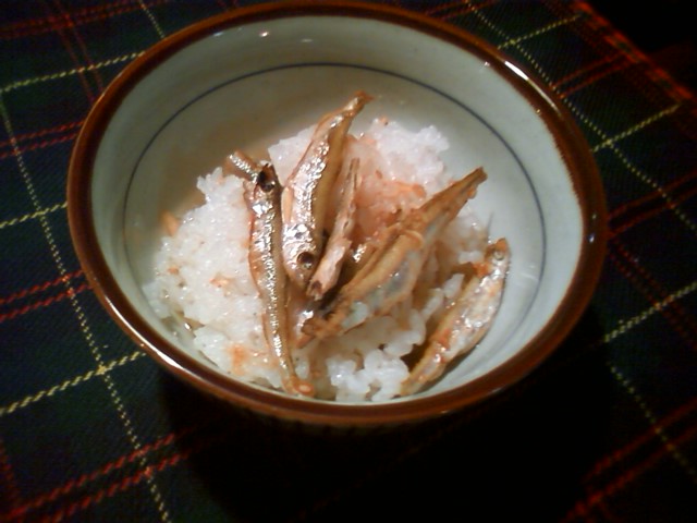 ボチボチ釣れましたのでワカサギ丼です。桧原湖のドナルドペンションにて。