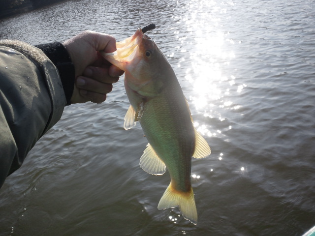 濁りは気になるが年末よりは少しディープもコンディションがよくなってるかなと思って出船しましたが、予感的中。今日は2人で7匹の釣果です。 ルアーは主にレッグワームのダウンショット。 リーダーは短め。
