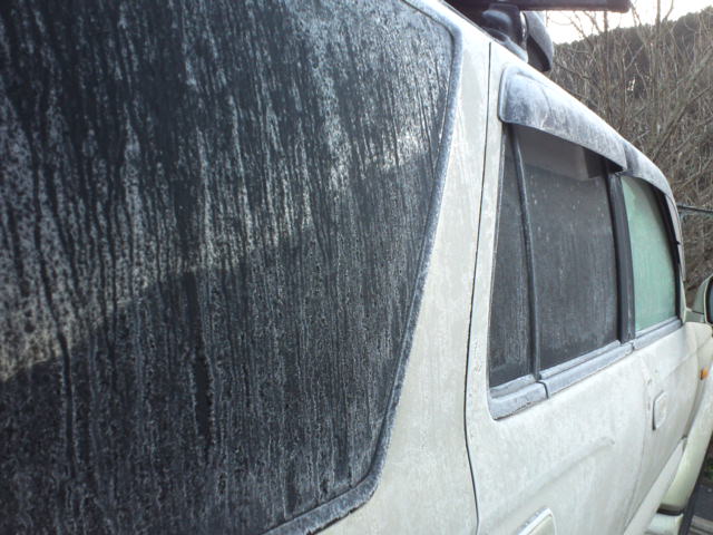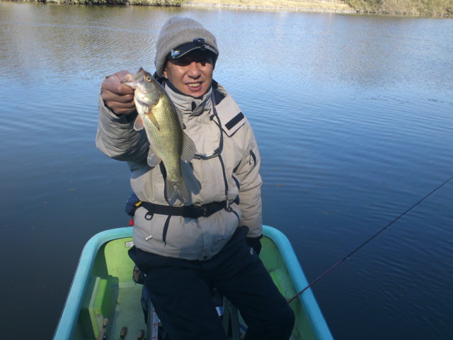 マイナス5℃の冷え込みからスタート。車もバリバリに凍りついています。釣れないわけではありませんがかなり厳しくなってきました。 魚探の画像から察するに、バスは浮いています。この冷え込みでそういう動きになったのだろうと思います。