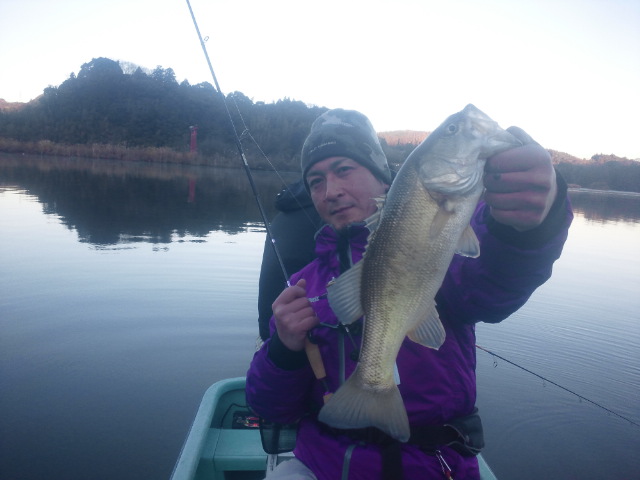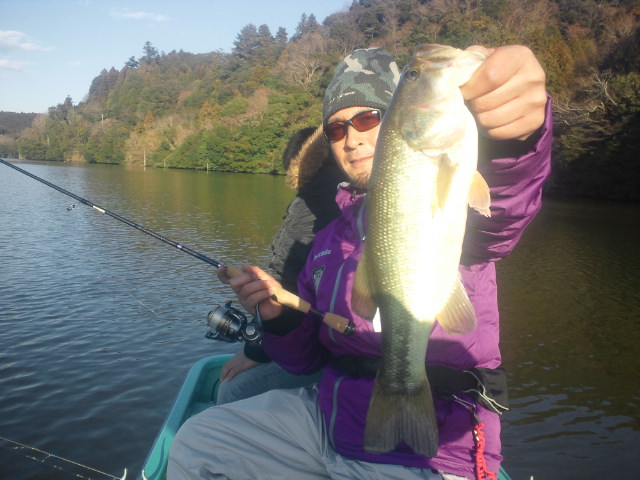 昨日に比べると船の数も減りました。今日から仕事初めの方も多いのだろうと思います。今日は風もそれほど強くなく、水は落ち着いていましたが、午前9時頃までガイドが凍っている寒さでした。それでも魚は40アップ混じりでぼちぼち反応してくれ、キャッチは船中7本バイトは倍くらいありました。