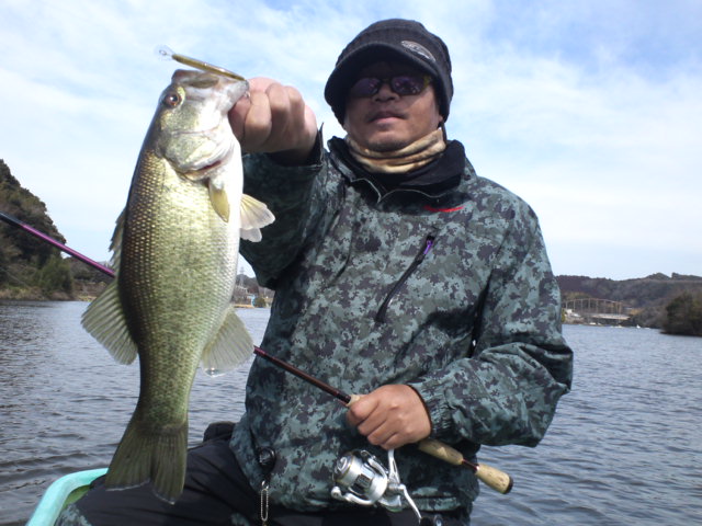 さて釣りの方ですが大潮も絡んで暖かい風でまだ少ないですがシャローの魚はかなり動いています。しかしいいスポットは入れ替わり立ち替わり人が入るため、バスはなかなか入ってこず、釣れても単発といった感じです。手前の魚をとる方法を探したのですがこれがなかなか見つからず…