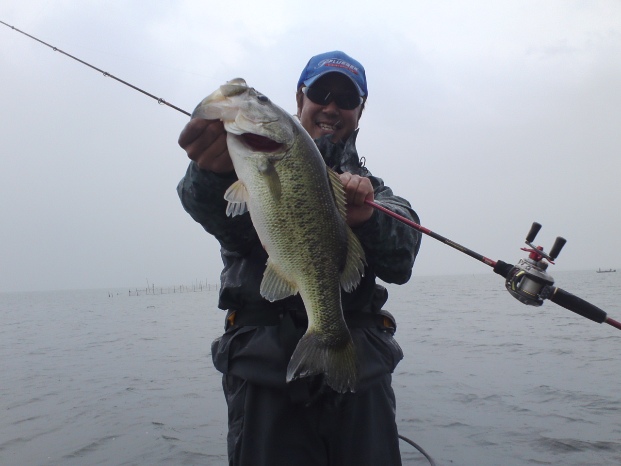 朝から南風が強く、スタート直後に雨も降り出し、すぐ土砂降りになり、けっこう絶望感漂う前半戦でしたが、サイトでもやろうかと思いショアをみていたとき、ブルーギルに激しくバイトするバスを発見。そこから巻きに転向してスピナーベイトとゴビー5インチをつけた巻きラバで50UPが連発しました。 明日も雨の予報。正直、琵琶湖は雨の日はあまりよくないと私は感じています。明日も何かを見つけたいですね。