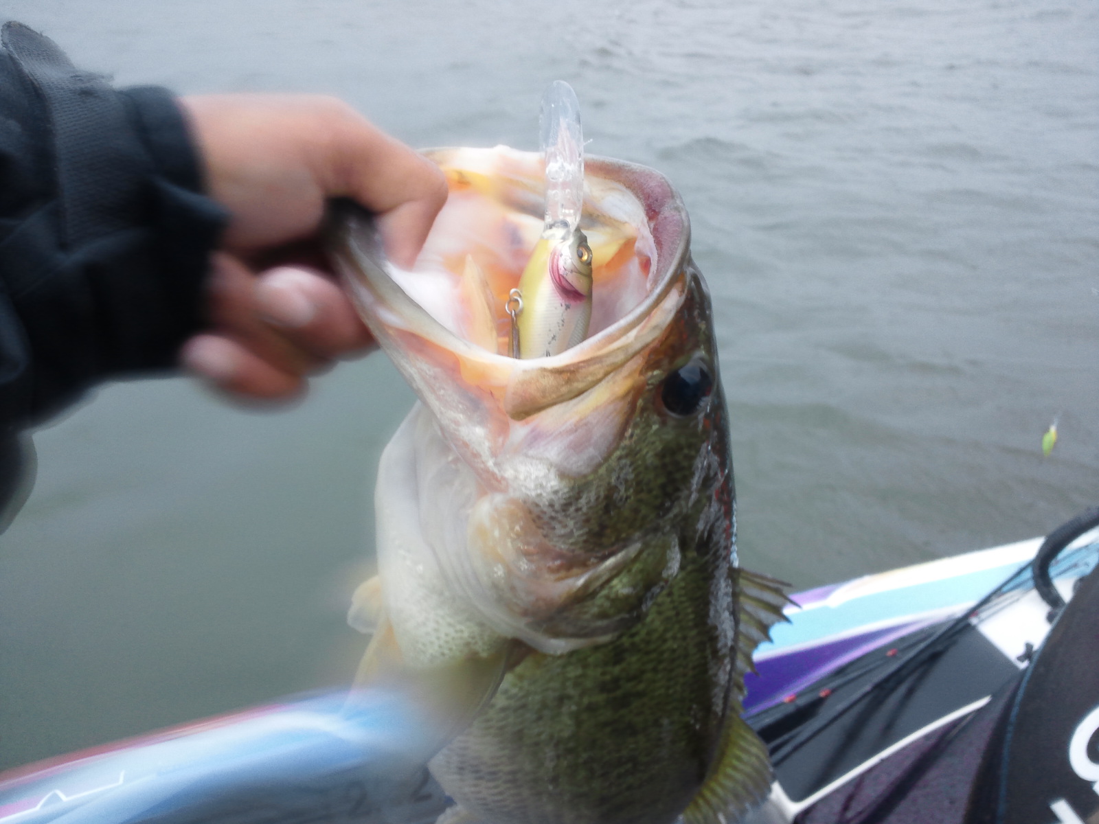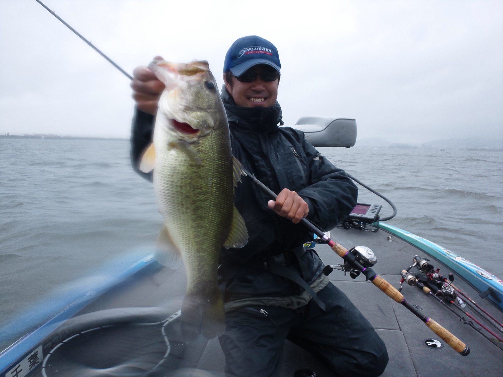 今日は予報と違う北風の強い一日でした。予報の東風を予想して動いていたため風裏には縁のない展開となってしまいました。昨日と違う向きに湖が掻き回されているため か私の行ったエリアは昨日に比べてサイズダウン。それでもDeep-X300とDeep-X150で35〜45が1人6、7匹、50アップもポロポロポロ。 完全なプリ狙いでスピナベを巻いて59 。ただ風に加え雨も横から降っていたので下着までびしょ濡れです。