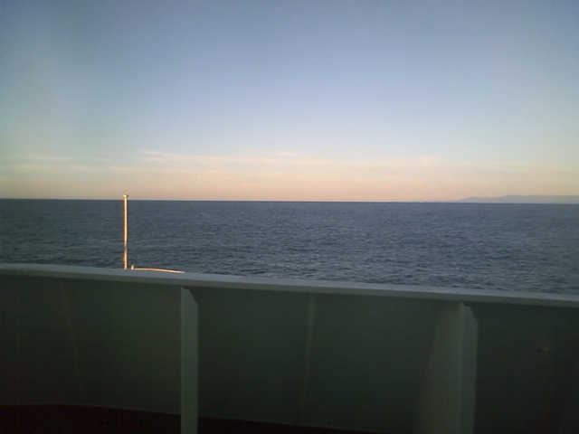 少し揺れます。慣れてくればどうってことないですが、初めは少し酔いました。あと24時間くらいで北九州ですね。